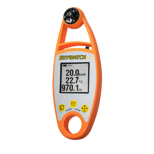 Appareil robuste et Suisse, mesurant vitesse & direction du vent, température, humidité, pression, altitude. Parfait pour des relevés météo précis sur le terrain.